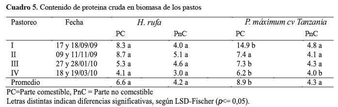 es diferente en la pastura P. maximun cv Tanzania (cuadro