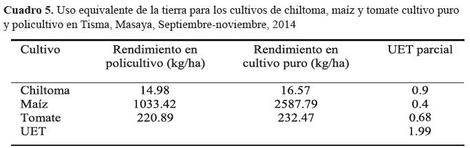 la tierra por unidad de área en el sistema de siembra de policultivo.