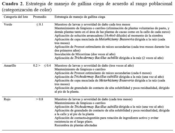 gallina ciega y las alternativas de manejo se centran en la aplicación