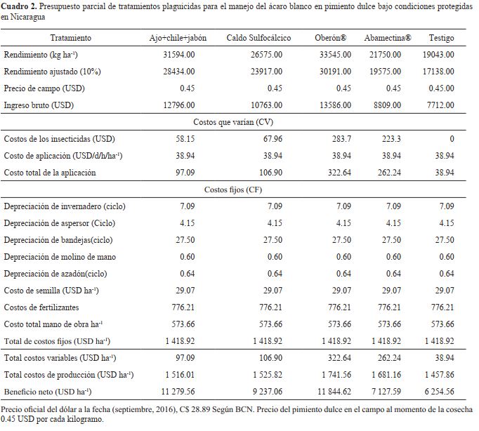 En los últimos cuatro años en la zona de San Isidro el cultivo de chiltoma es muy afectada por el ácaro blanco ocasionando pérdidas de hasta el cien por ciento de la producción, ante esta situación pretendemos con esta investigación conocer si algunos plaguicidas son eficaces para el manejo de esta plaga bajo condiciones protegidas y con estos resultados poder brindar información sobre la efectividad de los plaguicidas evaluados que sean económicamente rentables pero además que sean amigables con el medio ambiente.