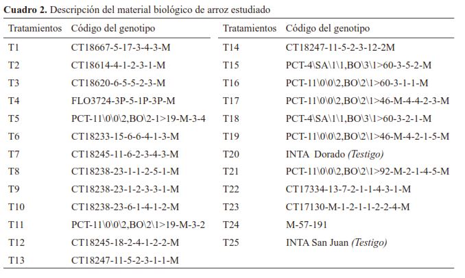 Fueron estudiadas líneas de arroz (Oryza sativa L.) provenientes del