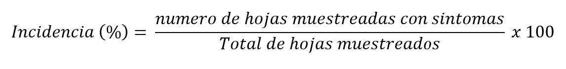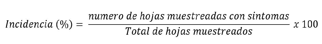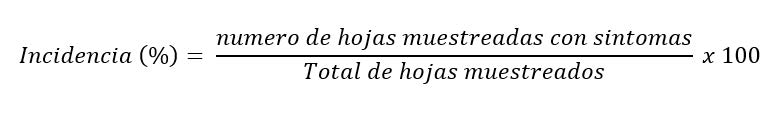 Severidad. Con el fin de facilitar la realización de este estudio, se utilizó una escala para medir el nivel de daño foliar en plátano. Esta escala consistió en la estimación visual del porcentaje afectado de hojas para obtener el grado porcentual de severidad se utilizó la fórmula general planteada por Vanderplank (1968).