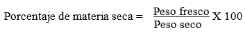 El porcentaje de materia seca aérea y de raíces de los portainjertos, fue determinado a partir del peso fresco y peso seco (g) medidos con una balanza analítica OHAOS después de 48 horas de secado a 80 °C. El cálculo de porcentaje de materia seca con la fórmula descrita por Vílchez (2002).