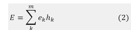 e: es la energía cinética unitaria en el tramo k de la lluvia (MJ / (ha-mm), h: es la altura de lluvia en el tramo “k” en mm, “m” es el número de tramos de la lluvia en estudio, y E se expresa en MJ ha-1.