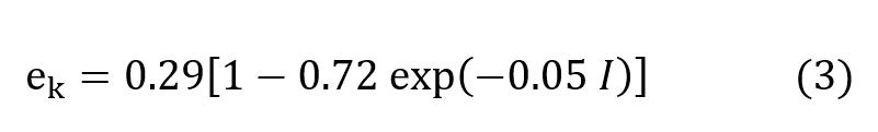 ek: energía cinética unitaria de un tramo “k” de lluvia en Megajulio) por hectárea por milímetro de altura de lluvia del tramo analizado (MJ / (ha-mm)).