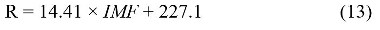 Se obtuvo la ecuación de correlación lineal para los datos del índice de erosividad de la lluvia Rmes e índice modificado de Fournier IMF mensual de la estación Aeropuerto de Managua, para el período 2000-2016. El coeficiente de determinación obtenido fue r2 = 0.75, indicando que hay una buena relación lineal entre las variables IMF mensual y R mensual. La ecuación de correlación obtenida es: