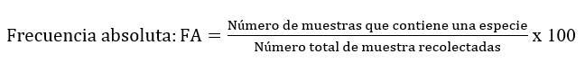 Los datos fueron ingresados a una hoja de cálculos de Microsoft Excel 2016, donde se determinó la frecuencia absoluta y relativa según las fórmulas propuestas por Balzarini et al. (2015).